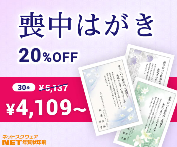 ネットスクウェアの喪中印刷は、10/1まで期間限定SALE 63%OFF